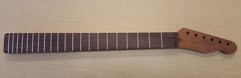 I chose to order a "V"-shaped (Clapton) custom Warmoth neck with 6130 frets (I would've preferred stainless, but they weren't offered in this size), and married it to a custom Warmoth Tele-style body with a contoured heel,