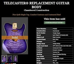 belly and forearm reliefs. I also ordered Fender Noiseless pickups, a standard 3-way Tele switch, Bourns pots, etc. Everything arrived about 5 weeks