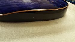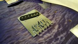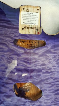 I chose to order a "V"-shaped (Clapton) custom Warmoth neck with 6130 frets (I would've preferred stainless, but they weren't offered in this size), and married it to a custom Warmoth Tele-style body with a contoured heel,