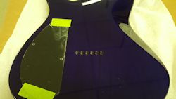 mounted in my drill press. I carefully maneuvered the body through the entire neck-pocket area making sure I didn't chip the finish around the edges, etc.
