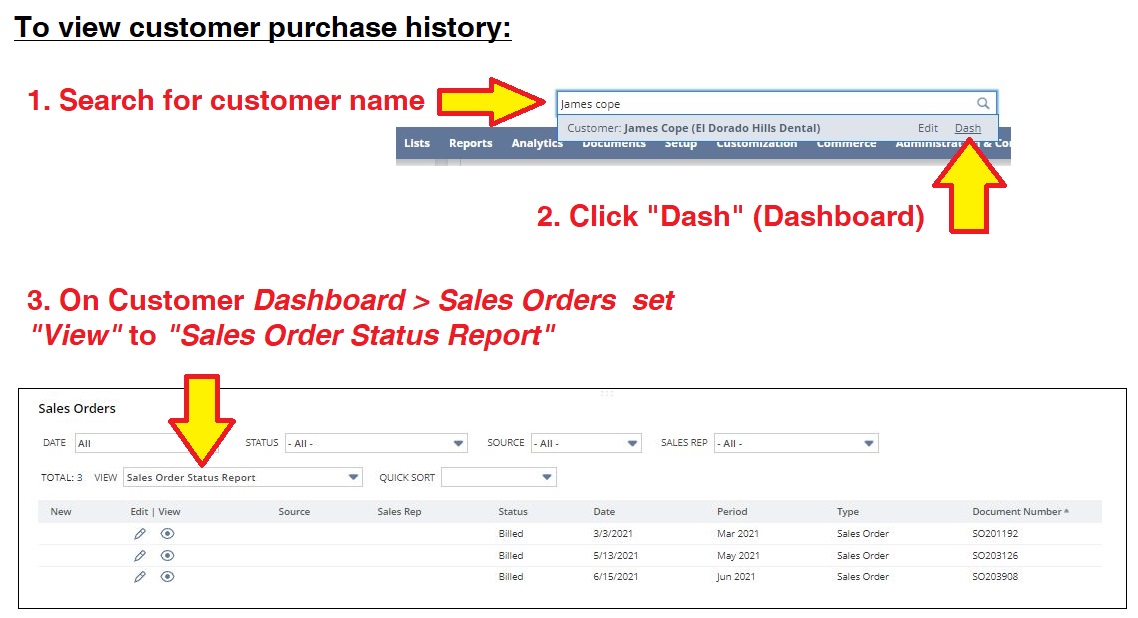 Although there are several ways of viewing a customer's purchase history, here's one of the quickest ways to get your results using standard lookup applet in the customer's dashboard.