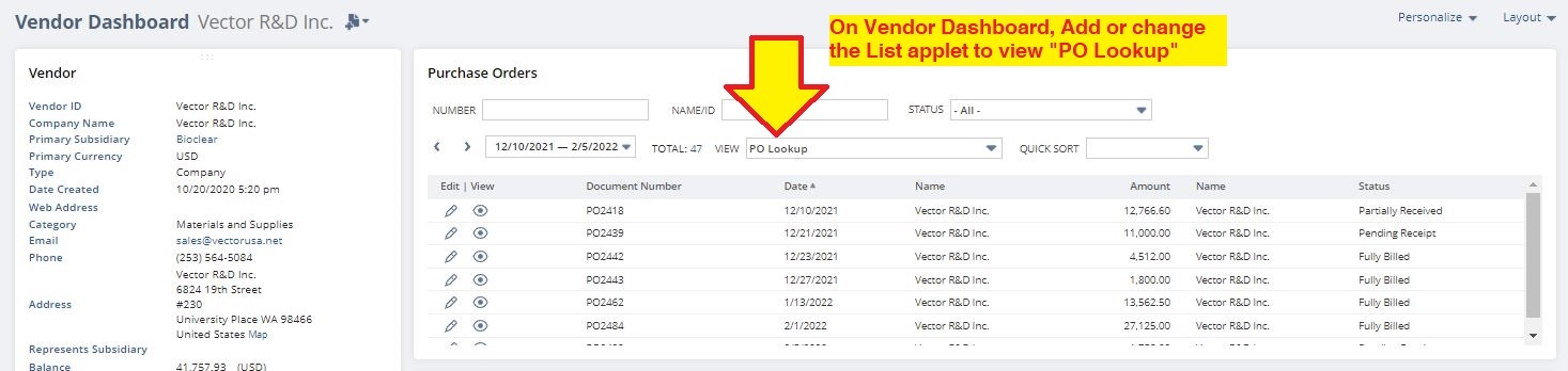 5. Sort the list by clicking the header of any field (Date, Document Number, Status, etc.)
