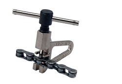 As a former cyclist and amateur racer I've spent my fair share of time with bicycle chains. As I thought about how to securely mount my pedals I remembered the simple link design on my bike's chain. Seemed like a perfect solution. I had all the necessary components... a spare chain from my racing days, and the tool known as a "chain breaker" ( a simple hand-held device that's kind of a miniature vice in combination with a link pin extractor, etc.).
